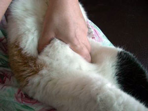 暖かく静かな場所で、優しく猫さんの身体を撫で撫で。
